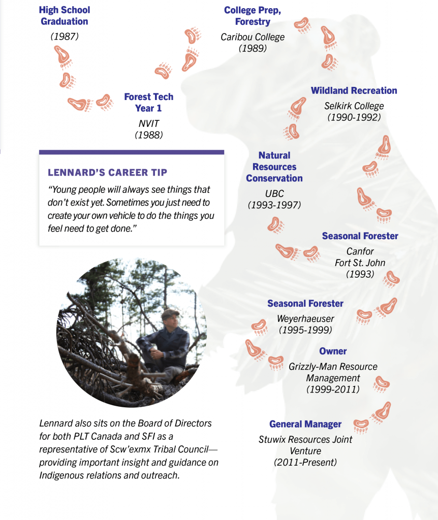 “They guided me to the University of British Columbia, where I completed a degree in natural resources conservation. A forestry job came up, and I realized I could use my conservation background to make a positive impact in forestry. I’ve been a registered professional forester (RPF) ever since.”