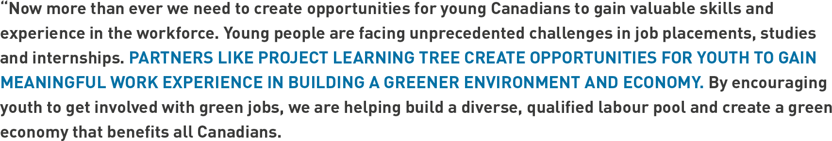 “Canada’s forest sector of tomorrow is going to be successful in large part thanks to the work that PLT Canada is doing today to connect with youth and develop their skills.” | |