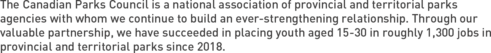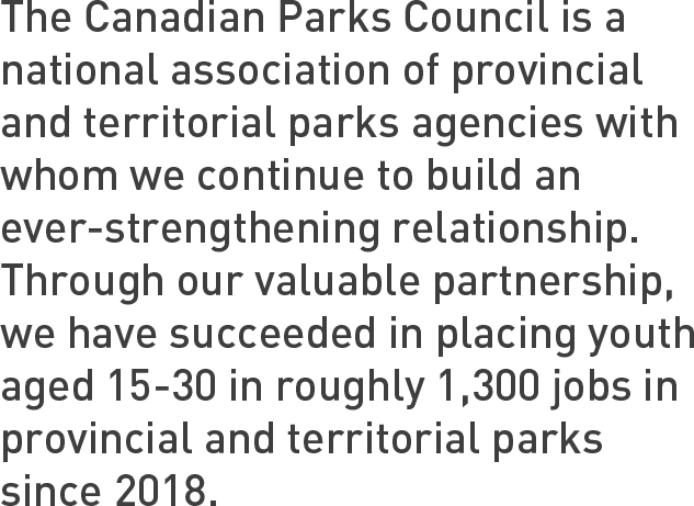 1. Alberta Parks 2. BC Parks 3. Canadian Parks Collective – Institute for Environmental Sustainability 4. Government of Yukon Parks Branch 5. New Brunswick Department of Tourism, Heritage and Culture