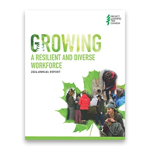 In 2024, we celebrated seven years of the Green Jobs program. It has supported over 8,100 job placements since 2018, including 2,950 young adults facing barriers to employment, such as youth self-identifying as involuntary NEET (not in employment, education, or training), youth living with a disability, and members of the 2SLGBTQIA+ community. We have also delivered 12 mentorship cohorts with over 650 participants and supported our largest Youth Delegate program ever with 50 students and young professionals. Additionally, in 2024, we launched Trees & Me: Activities for Exploring Nature with Young Children and engaged more than 700 educators to support environmental education.
