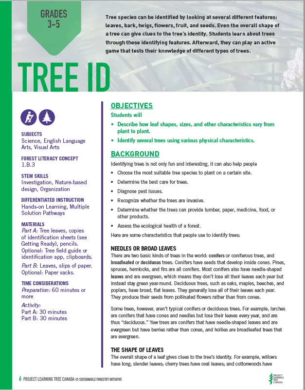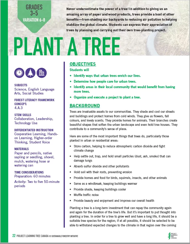 Connecting PLT Canada’s Trillions of Trees Activity Collection to Province and Territory Curriculum Grades 3-5