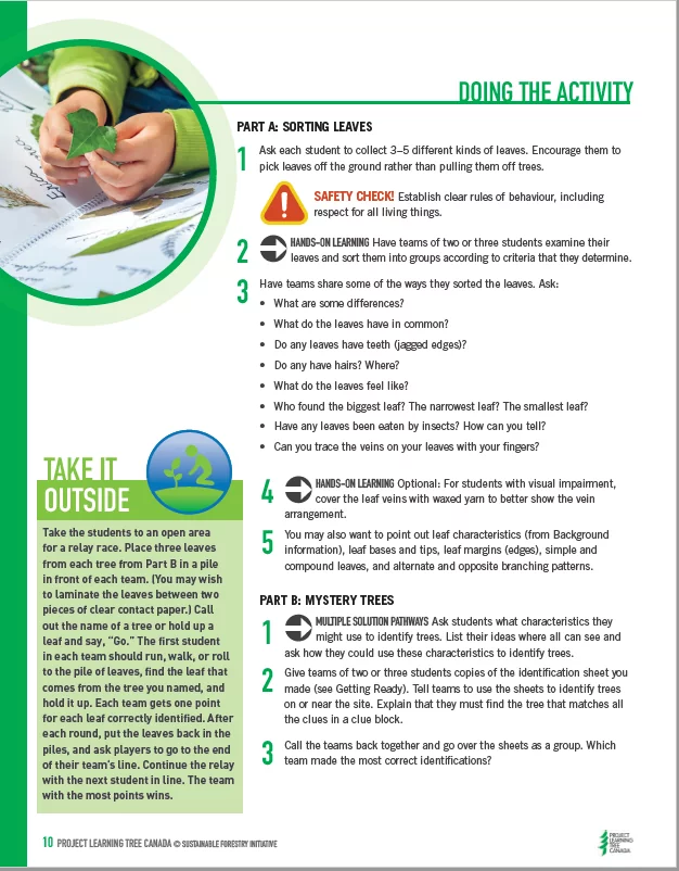 Project Learning Tree Canada is committed to supporting educators in providing instruction that helps students meet mandatory learning expectations of their province and territory’s curriculum. Trillions of Trees includes activities exploring the real world through cross-curricular integrated learning, critical thinking and problem solving. They provide students opportunities to practice skills, and make personal connections to the curriculum as they investigate their environment and communicate about it.