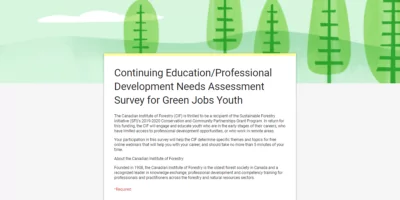 Deux heureux participants au programme des Emplois verts pour les jeunes gagneront un voyage toutes dépenses payées au Congrès national de l’Institut forestier du Canada (ICF), qui aura lieu du 6 au 9 octobre prochains à Pembroke, en Ontario. Le prix gagnant comprend aussi un abonnement d’une année à titre de membre étudiant de l’ICF. Vous n’avez qu’à participer à une enquête en ligne d’une durée de cinq minutes (en anglais) pour être admissible au prix. Vos réponses au…