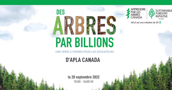 Le 20 septembre 2022 de 15h00 à 16h00 HE Ne manquez pas notre webinaire du 20 septembre pour en apprendre davantage sur Des arbres par billions! APLA Canada est heureuse de lancer une nouvelle série de collections d’activités thématiques axées sur des niveaux et des sujets précis. Des arbres par billions est notre première version avec trois activités pour les éducateurs des élèves de la 3e à la 5e année. La série invite les apprenants à étudier les caractéristiques uniques…