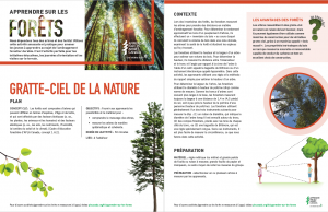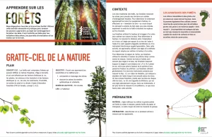 Gratte-ciel de la natureLes forêts sont composées d’arbres qui peuvent différer en termes d’espèces, d’âge et de taille, et qui sont affectés par des facteurs biotiques (p. ex., les plantes, les animaux et les humains) et des facteurs abiotiques (p. ex., les sols, les nutriments, l’humidité, la lumière du soleil et le climat). |